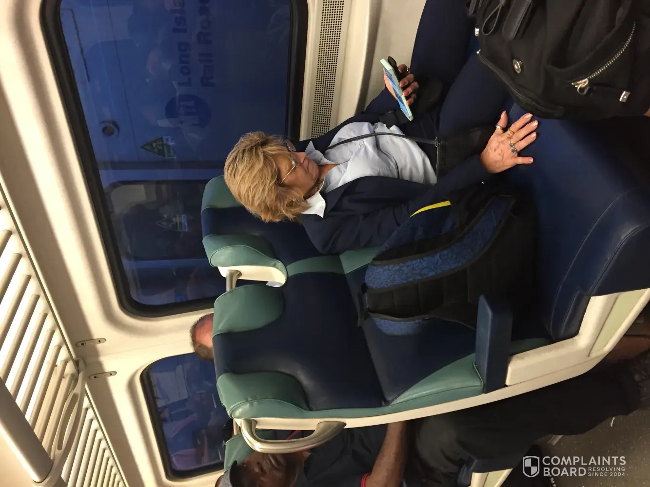 I was on the 6:53 AM train to Atlantic Terminal and on the Jamaica stop ; This woman decides to take up 2 seats. One for herself and one for her bag-pack. Two riders wanted her to move her bag so they can sit and woman stated that she is on disability and had a hip surgery. The conductor walked by twice to check tickets and passed by her and did nothing. If this woman has a "disability" and needs to do this, then she needs to go sit on the disability section on one of the cars or sit on the seats behind the conductors booth. If she is going to sit on the 4 or 6 seat sections she should not be using one of the seats for her bag, there are luggage racks on the top and there is coat hangers to hang her bag-pack. This can not happen especially during rush hours. The conductors need to address this to anyone who do this and not just check tickets.