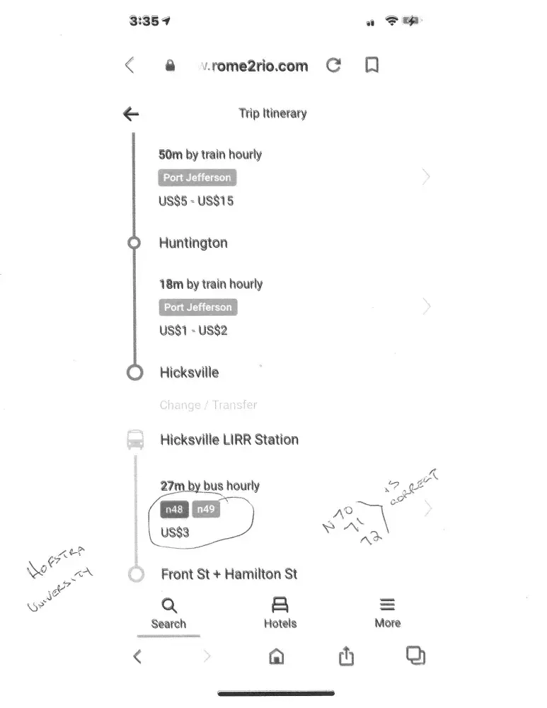 And for the Nice bus the schedule need to be up dated, it said take N48, N49 to front st. Hofstra University. Not true I have to take the N70, N71. I was was late for work. I snap shot to show I wasn't lying