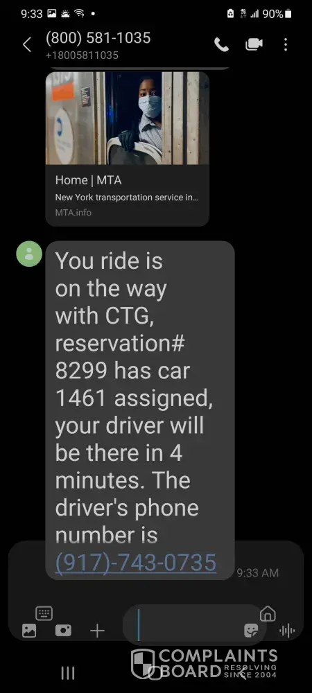While there are problems with all access a ride brokers / drivers, none are as consistent as CTG, the fact that they can not be found online and treat AAR customers with such disregard leads me to believe that they are less of a cab company and more scam artists that have somehow managed to get a contract with the MTA / Acccess A Ride. We need to put an end to this contract, deal or whatever because I promise you this is a major problem for people who are just trying to live their lives without trying to do mental gymnastics to figure out if their ride will come or if they have to figure in traffic plus their hour wait time for CTG before scheduling their day.