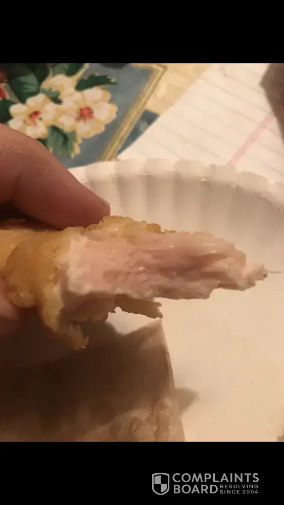 Tonight my wife stopped and got some chicken and brought it home and there was one piece of chicken that was pretty uncooked and I had already ate 3/4 quarters of it not sure what happened but after that we checked them all but still then your already kinda grossed out so we tossed it so now I'm just sitting here and mentally I'm thinking I'm going to get sick but I hope that's not the case not sure how that happened but been going to long John silvers for years and I think this is the first time I can remember this happening.