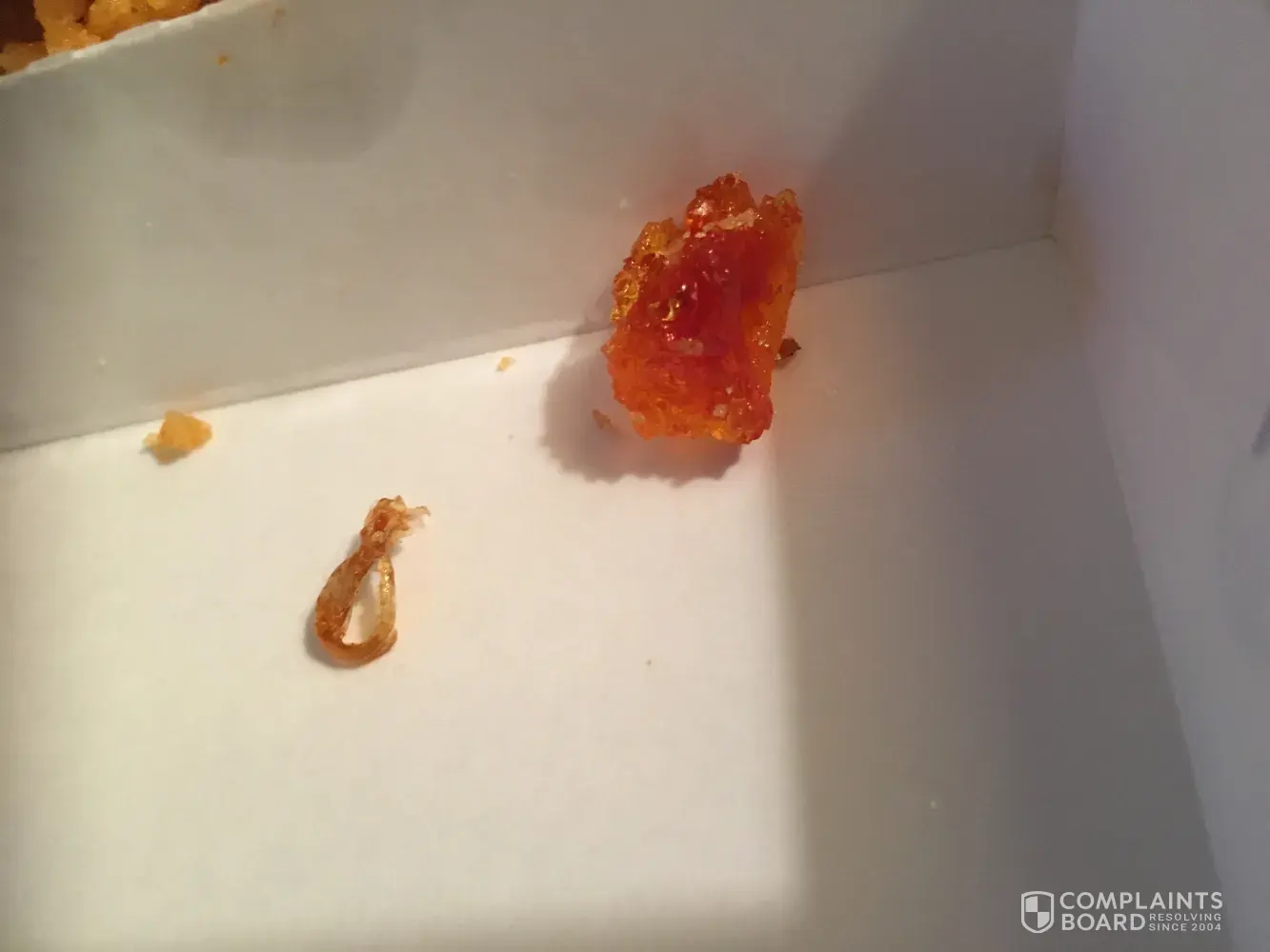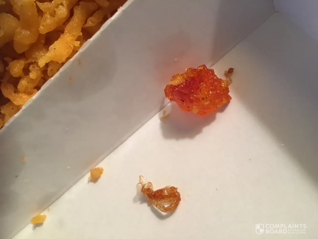 Read full complaintnasty stuff found in crunchies of a piece of fish side