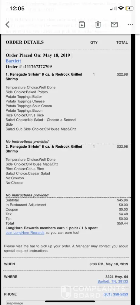 LongHorn Steakhouse Complaints Page 10 of 20