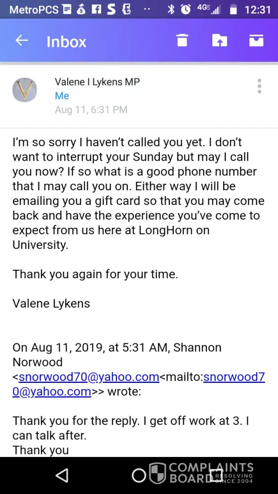 Read full complaint and 1 commentAbout LongHorn Steakhouse
