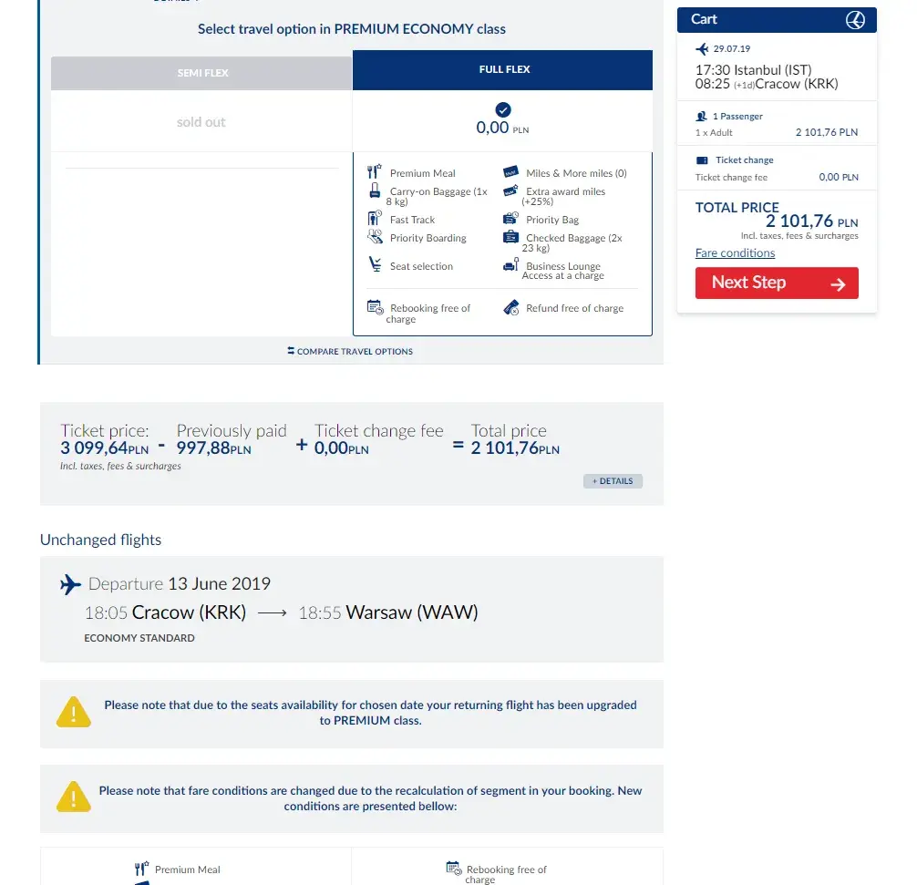 I had a flight on 10.07.2019 from istanbul to krakow and i wanted to change this reservation paying the additional price.