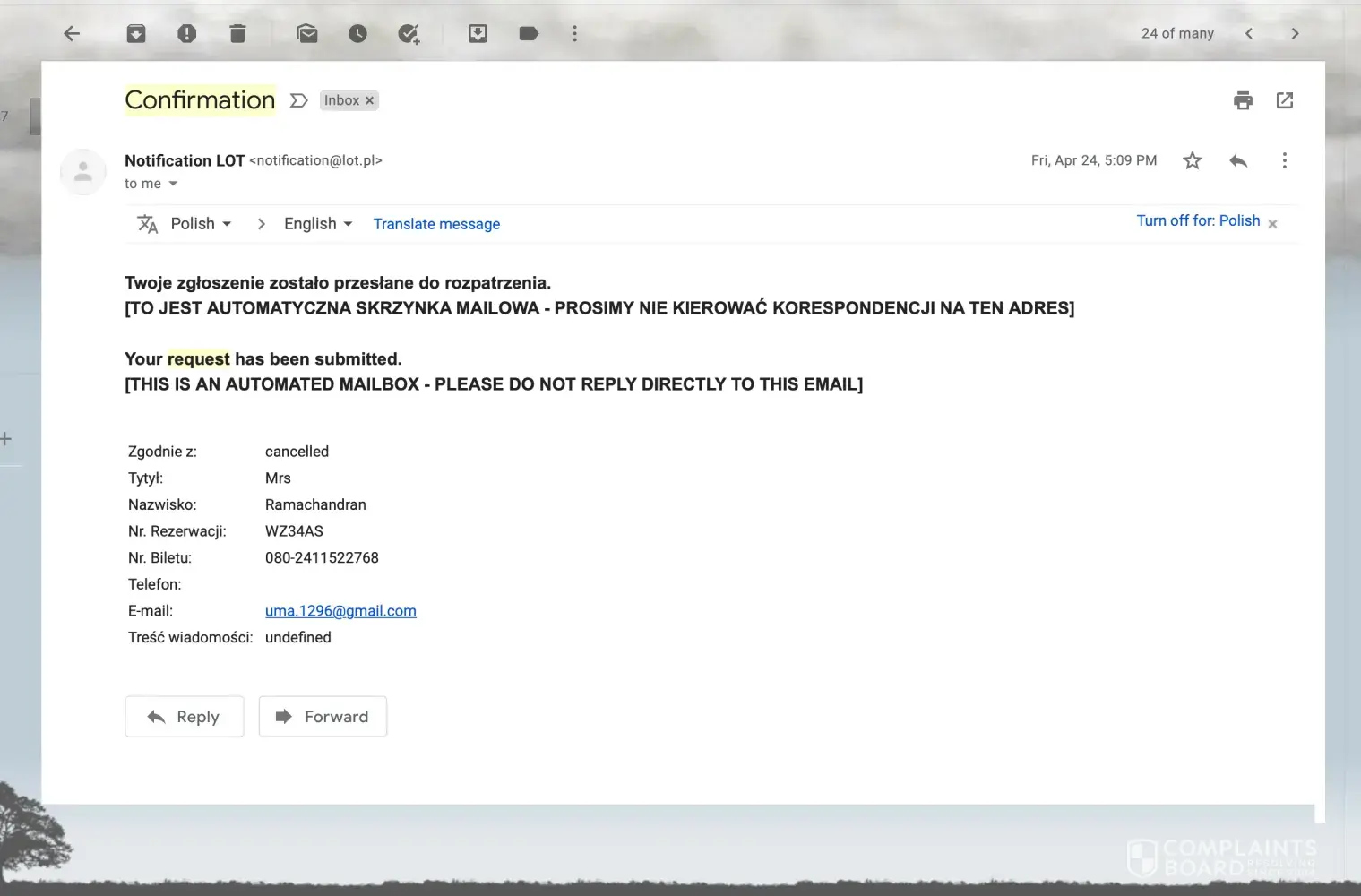 LOT Polish Airlines has left an official reply on this complaint.