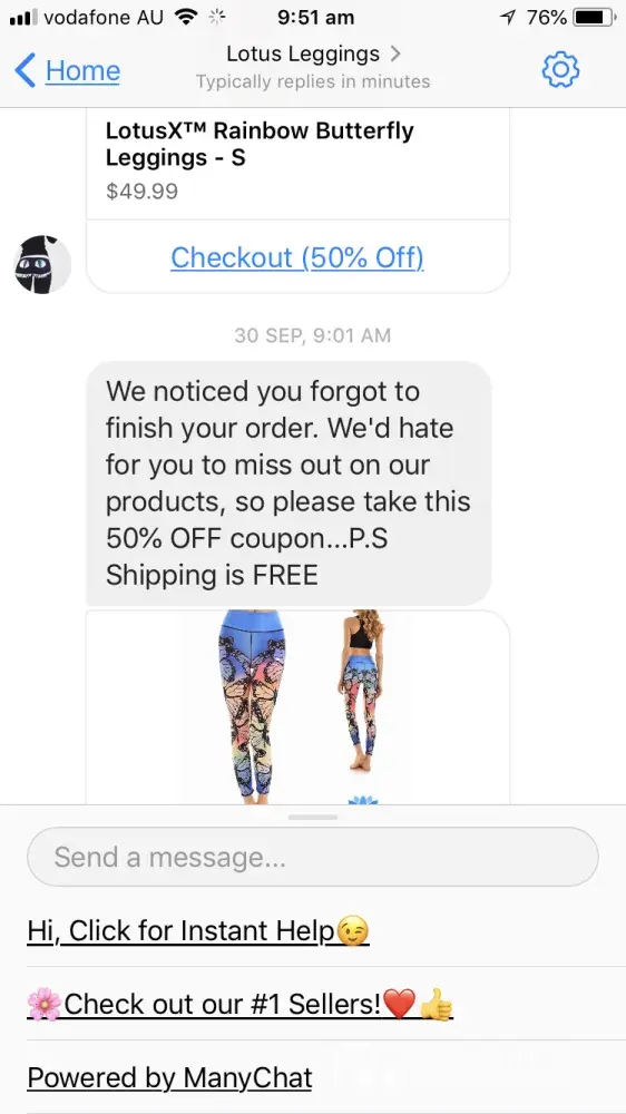 I got a private Facebook message to continue with my shopping which included a PS remember shipping is FREE.