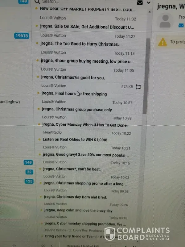 I accidentally opened an email from LV on approx. 1/25/2023 and I have received nearly 1000 emails since. I have blocked and unsubscribed to no avail. They just keep coming. I want it stopped NOW. I am a realtor and you have taken over my email. I cannot conduct business with LV sending me 250 emails in a day. This is absolutely unacceptable and the most ridiculous thing EVER! It is so bad to do this to anyone. I want confirmation From Louis Vuitton that this has been corrected and stopped!