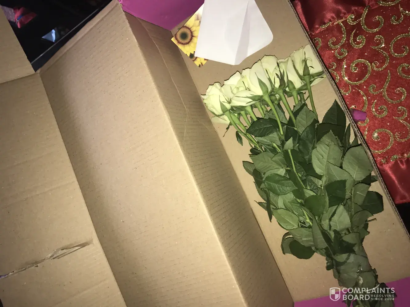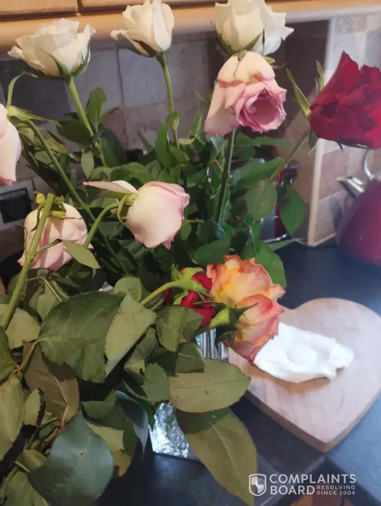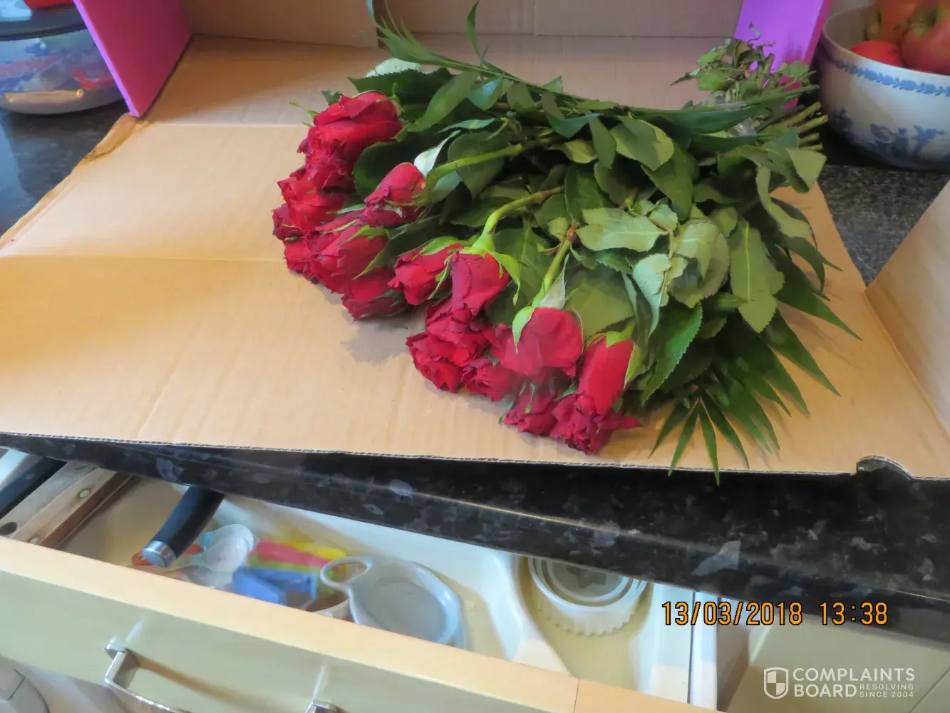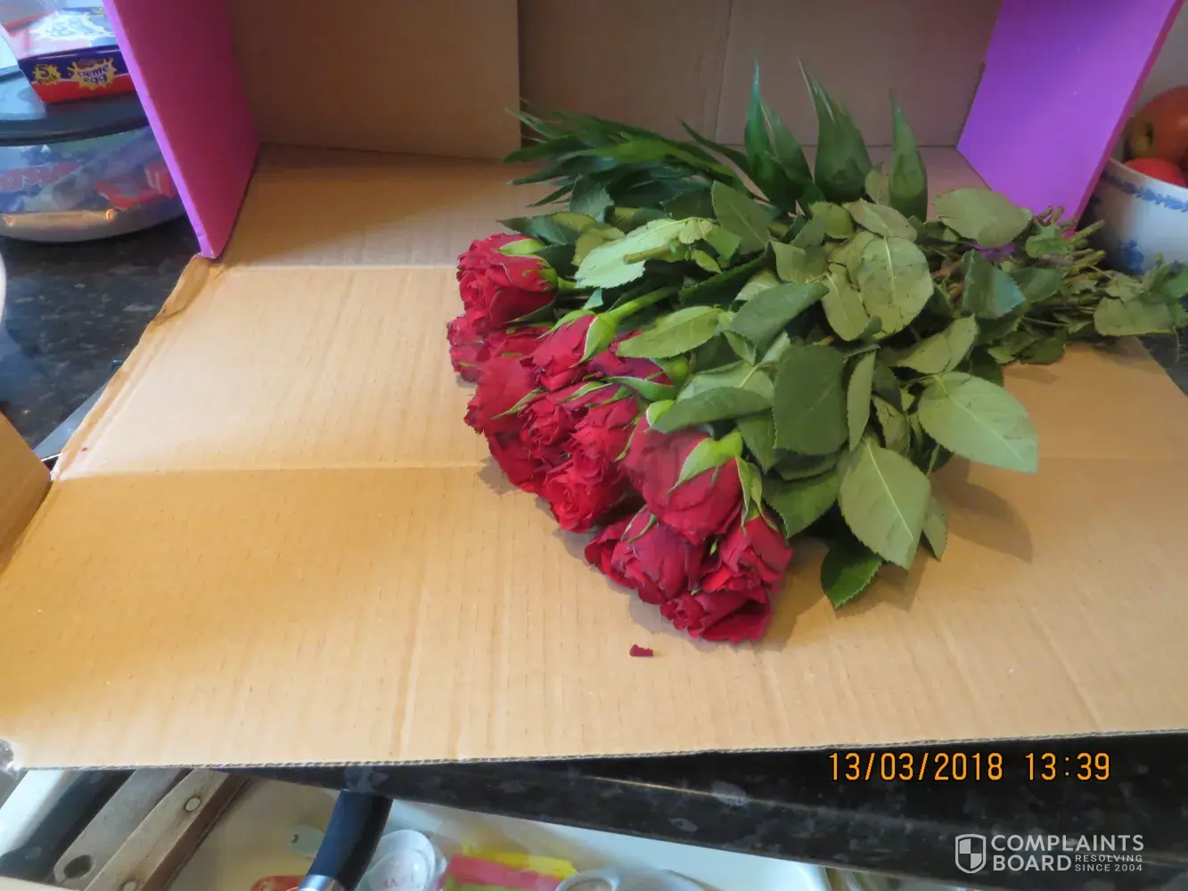 Flowers were ordered for delivery on saturday - one day before mothers day, a tiny bunch of dead roses arrived on tuesday in a big box. My mum is gutted as I am.