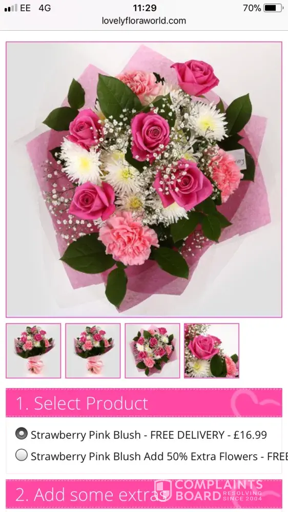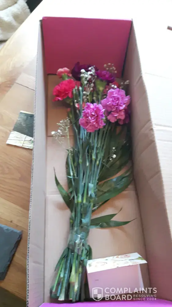 I a complaining because I am fuming, I ordered a set of these flowers from the companie and they were for my nan's birthday, not only did they turn up 3 days late, they were dead, hardly any flowers and no wrapping on the flowers, my nan was devastated when they turned up and I am embarrassed, how a company can send them out looking like this is a disgrace.
