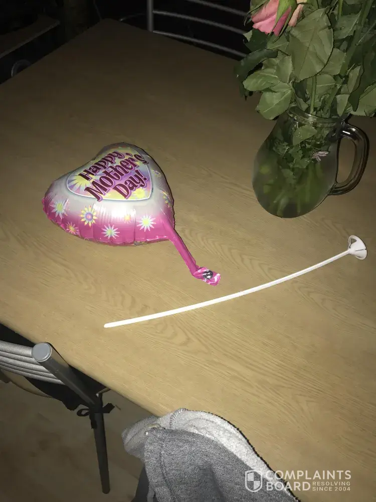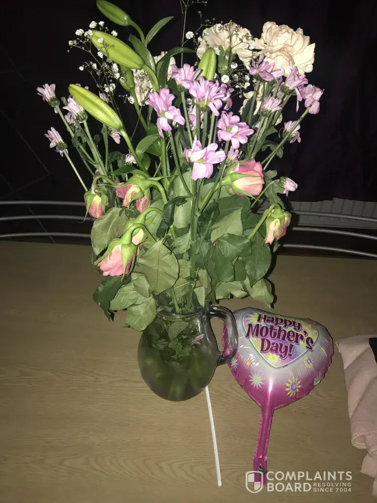 I ordered some flowers for mothers day on the Thursday the 8th March 2018. On Saturday the 10th March I sent an email to ask where my order was and how long this was going to take as should of been here by Friday. I had no response so I emailed again on Monday the 12th as the flowers still had not arrived. I Still had no response. Then Tuesday the 13th March the flowers were delivered in the afternoon in a tight small box the flowers were damaged and dead hanging off and the mothers day balloon was broken. I paid an extra 10 pounds to have a bigger bouquet of flowers and I could of brought a better bunch from Tesco for a fiver. I paid 25 pounds for these flowers and I never been so disgusted in my life. I have emailed them again with pictures and asking for my money back and I still have no received an email back. If I do not get a response back I will be taking this further with either the police or writing a letter. As it is false advertisement.