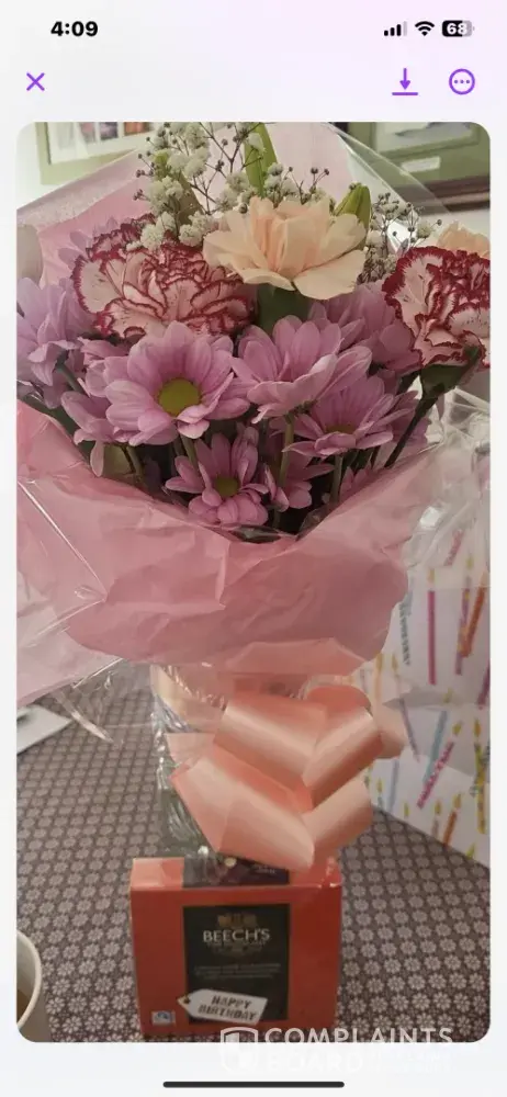 Birthday bouquet nothing like picture and wilted. Mothers day bouquet late and totally dead. Flowers were clumped together with sellotape not even arranged as picture.