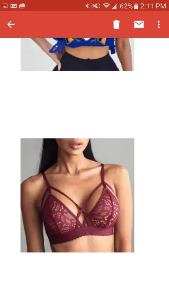 Missing Items: Burgudy Bralette and blue denim buttom up shirt