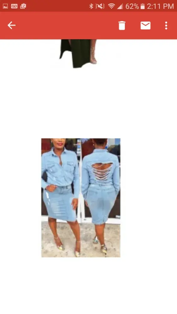 I order a blue jean mini dress at the beginning of April along with a dress for the last week or so I've been trying to contact lovelywholesale with no luck no response so I'm in and out of my account weekly I haven't received any items yet and that why I check my account weekly so many days out the other other the dress is black no problem with it just the blue jean mini dress .This week I went to check and I check near the weekend just to see if it my order arrives before I check went to check the week of the 25th of may open my account I see a different dress then the one I ordered now not only am I checking to see why is it taking so long or trying to track I'm trying to contact them about the dress being switched out for another dress that I fine very not liked by me so I been trying contact them by submitting a ticket no luck I've tried live chat I got through once and somehow got disconnected after she told me to !I've chat with her through email and I explained to her I'm not sure how to do that but I did explain to her some of what my problem I'm having. I will keep trying until I get someone or hear from someone by email or I get my package I was trying to stop the delivery before it arrives and resolve the problem either with the correct dress or a refund.The blue jean dress with the tie string around the waist is the one that was originally ordered.