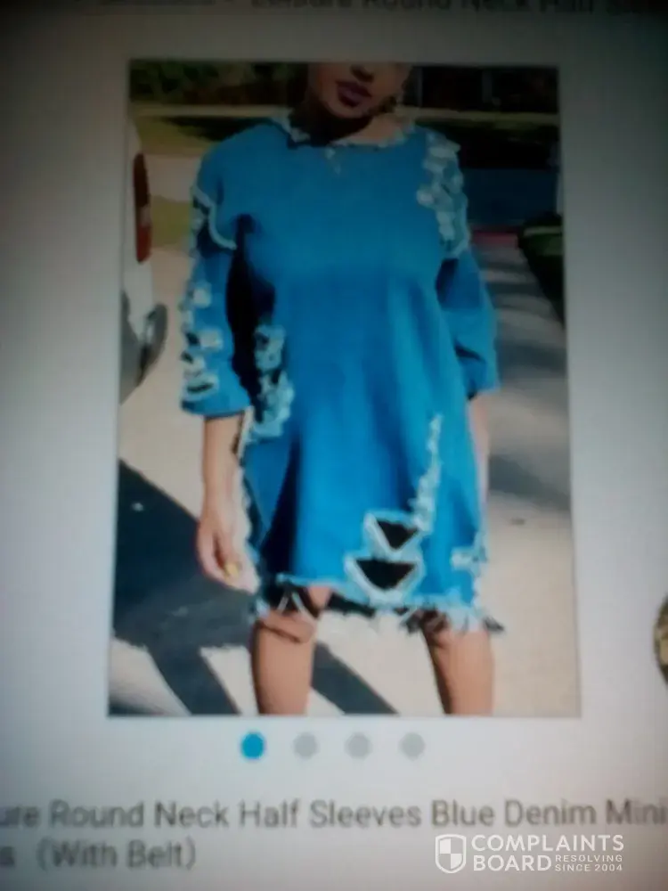 The dress that was sent to you from me is the dress Lovelywholesale switched the blue jean mini dress I ordered.I tried to send you the other dress not sure if you received it but I can describe it. A blue jean mini dress with the collar comes up the neck and fits all the way around the sleeves are short with cuffs the back is longer then the front with a draw string around the waist.If I can get the original dress I ordered that would be fine if not I would like a refund