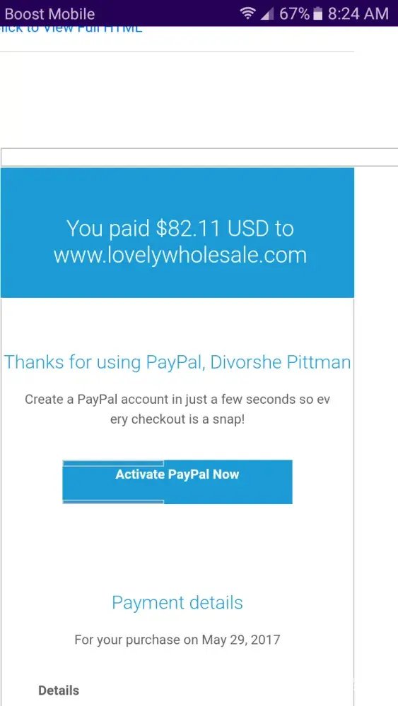 I placed the order on April 26th to be exact it was around 5 p.m. I'm not understanding why I still have not received the email confirming that the order is on the way or that the order is in process of being shipped it's been almost a month and less than a week it will be a month so I'm just going to contact PayPal and ask him to return my money this is very ridiculous and I'm not understanding how come you all have not send me an email if not an email a text message letting me know what is going on with the merchandise that I purchase