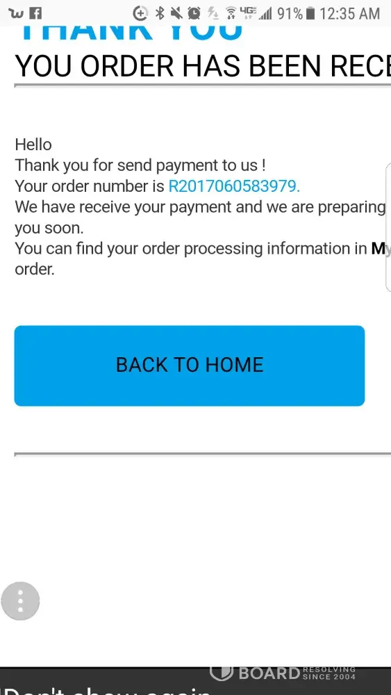 order not received