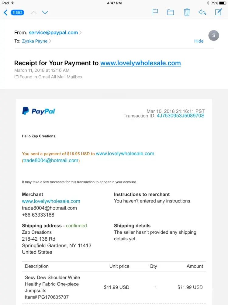 I placed an order on june 1 2018, spent almost $200. After 6 days of hearing nothing I sent a ticket. Well I got a response not to long after in my email box. Could I read the response, of course not. It only told me basically to sign in, and when you do it takes you to tickets but nothing is there for sent tickets. I honestly wish I would have read the reviews on shipping, etc because I would have shopped fashionova. Next clothing hail will definitely not be lovelywholesale... Order #r2018053199000