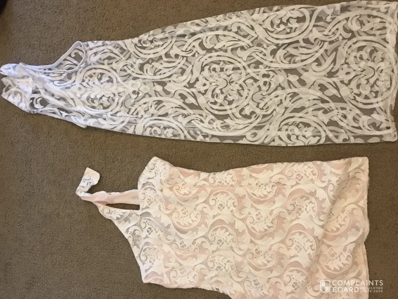 I received my order (R2017070283877) today in the mail July, 11th 2017. My birthday is in two days July 13th, I ordered TWO dresses just in case one didn't work out I'd have a back up dress ordering from lovelywholesale made sure I'd be out of luck. Both dresses look NOTHING like they did in pictures and one came with two holes at the bottom!? The pink dress never showed to have any white lace on it in the picture if I would've known that I would not have ordered it. The white dress never appeared to be see through as you can see in the photos. I would like a new order with express shipping so I can have different items worth the same amount as my order or I would like a full refund. I will send the stuff back but this is ridiculous. I am completely dissatisfied and disappointed not only because it's so close to my birthday but I was relying on at least ONE of the sldresses to be accurate.