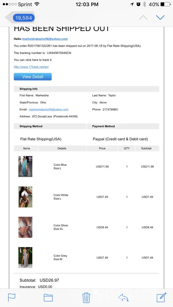 I ordered one orange pullover shirt on August 21, 2017 and when I checked my account they charged me for 2 using paypal. However, I clearly chose the other option for payment which was just with my card as a guest. I have yet to receive a tracking number. On top of that, they have the wrong shipping address when I clearly gave them the correct one. I live in Alabama and they are shipping to NC which is my old address. I ambgetting very pissed off. I will be reporting this company to the Better Business Bureau! They have yet to contact me in regards of my email and phone call.