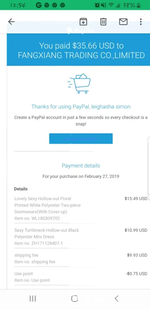 Afternoon. My name is Sophia Hatcher. I ordered a dress on March 22, 2019. I paid for express delivery. I never received my product. Is there a tracking number that I can track my product? Can someone please call me at