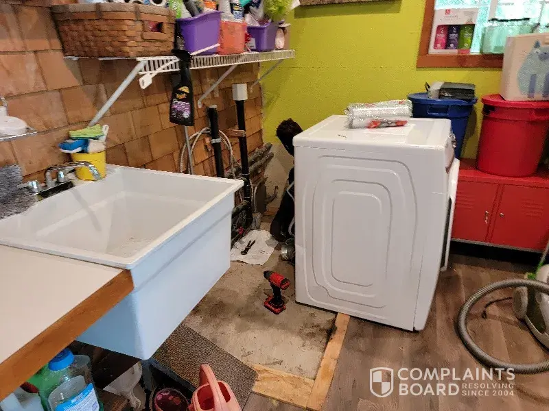 During unload from truck , they handles the sensitive machine without care, almost dropping the 2 Samsung appliances on the gravel road in my driveway. The high speed drive up the road before might have already damaged the dryer (I have photo). the installers (Daniel and Garcia?) damaged almost my wall pipping (while disconnecting the cables for haul away machines), the RIGIflex Duct was installed amateurly. when i tried to slow them down and pointing our the kink on the side of dryer, I was laughed at- but communication was otherwise impossible.