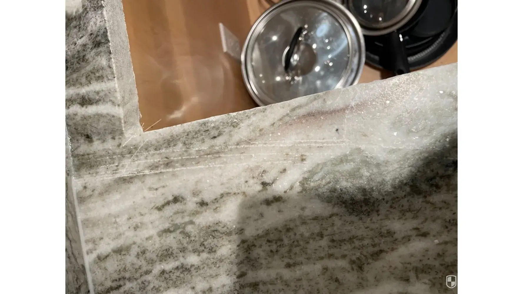The morning after the install, now being light out, it was clear that the installers did a pretty shoddy job. Not only were there over 30 scratches on the countertops, there were cracks in the corners by the sink cut out and the cook top cut out. One end of our granite backsplash was almost 2 inches short, the seams were horribly done over the cook top... it was a disaster.