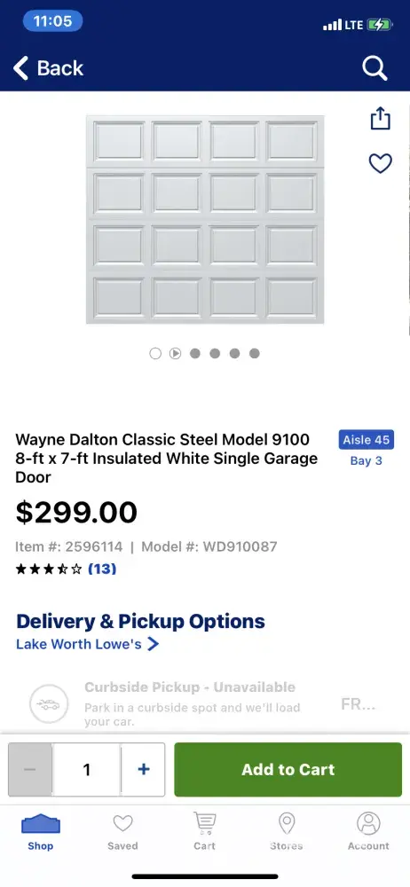 I'm a contractor and use Lowe's extensively. I need a plain overhead door for a customer and my Lowe's, East Fort Worth, Texas, didn't one in stock. My Lowe's app said the Lake Worth Lowe's had one in stock however this Lowe's is about 25 miles across town. I needed the door so I went TJ to the Lake Wirth store, grabbed a cart, went to the garage door...