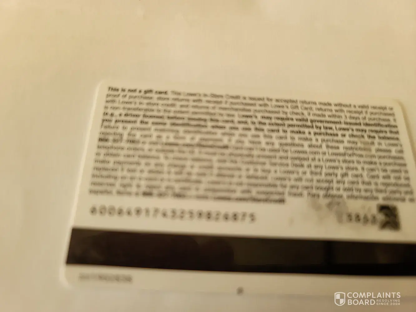 Read full complaintLowe's In-Store Credit