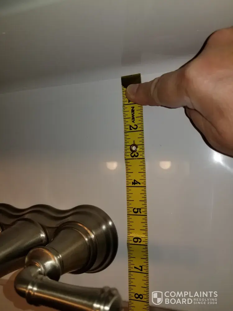 You may ask why I didn't return the sink? Possibly because I didn't want to wait another 2 months for a new one. I'm beyond disgusted with everything about this sink and now I have no choice but to live with it. I would at the very least like a refund, when in fact I should demand a new sink made to the specifications Lowes were given in the first place. This is not how I ordered it, this sink looks ridiculous. It will be cold day in hell before I ever order anything custom made from Lowes.