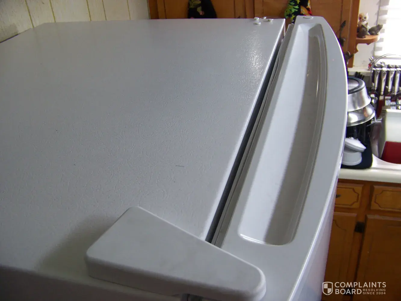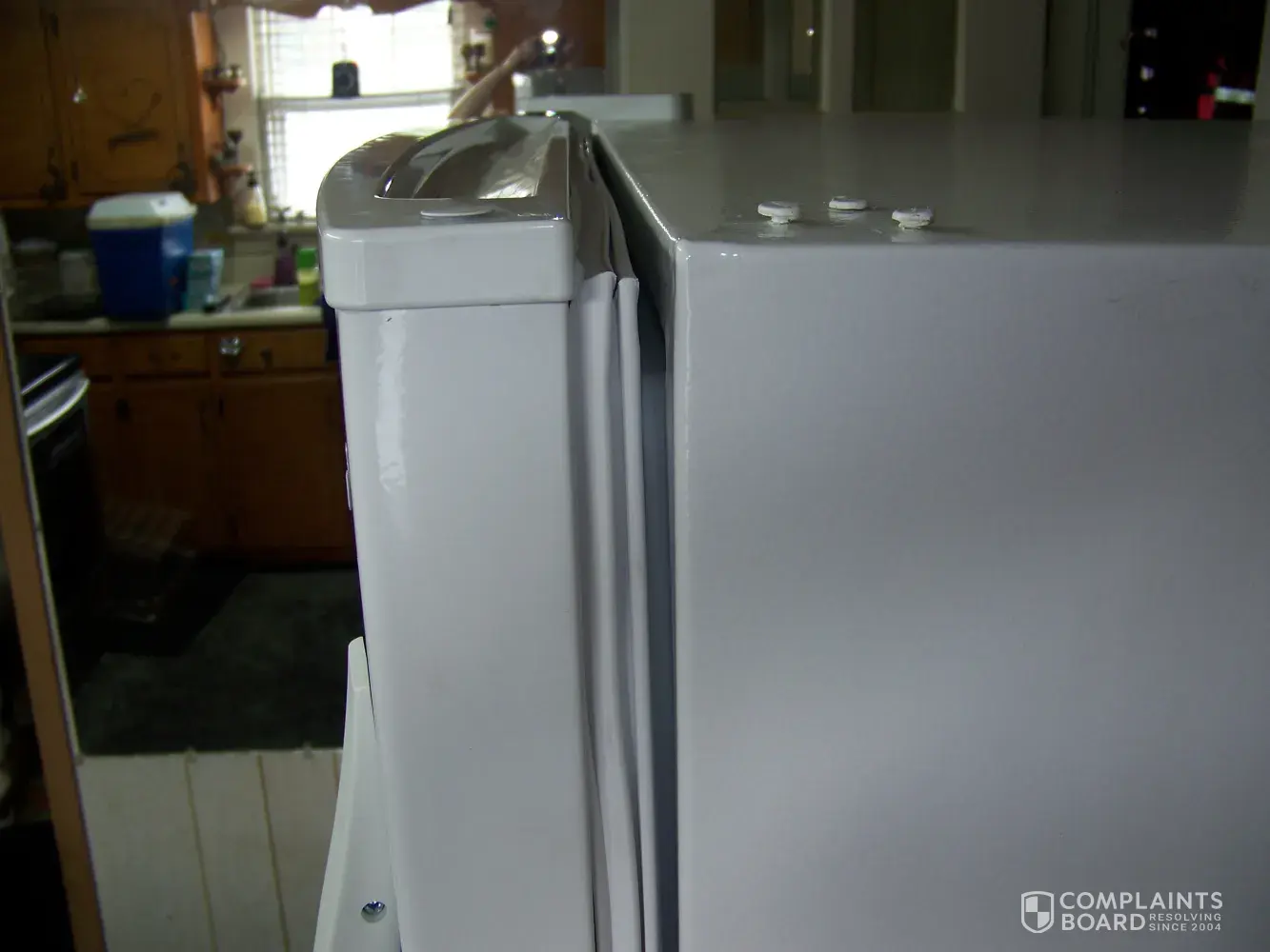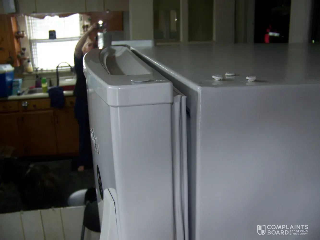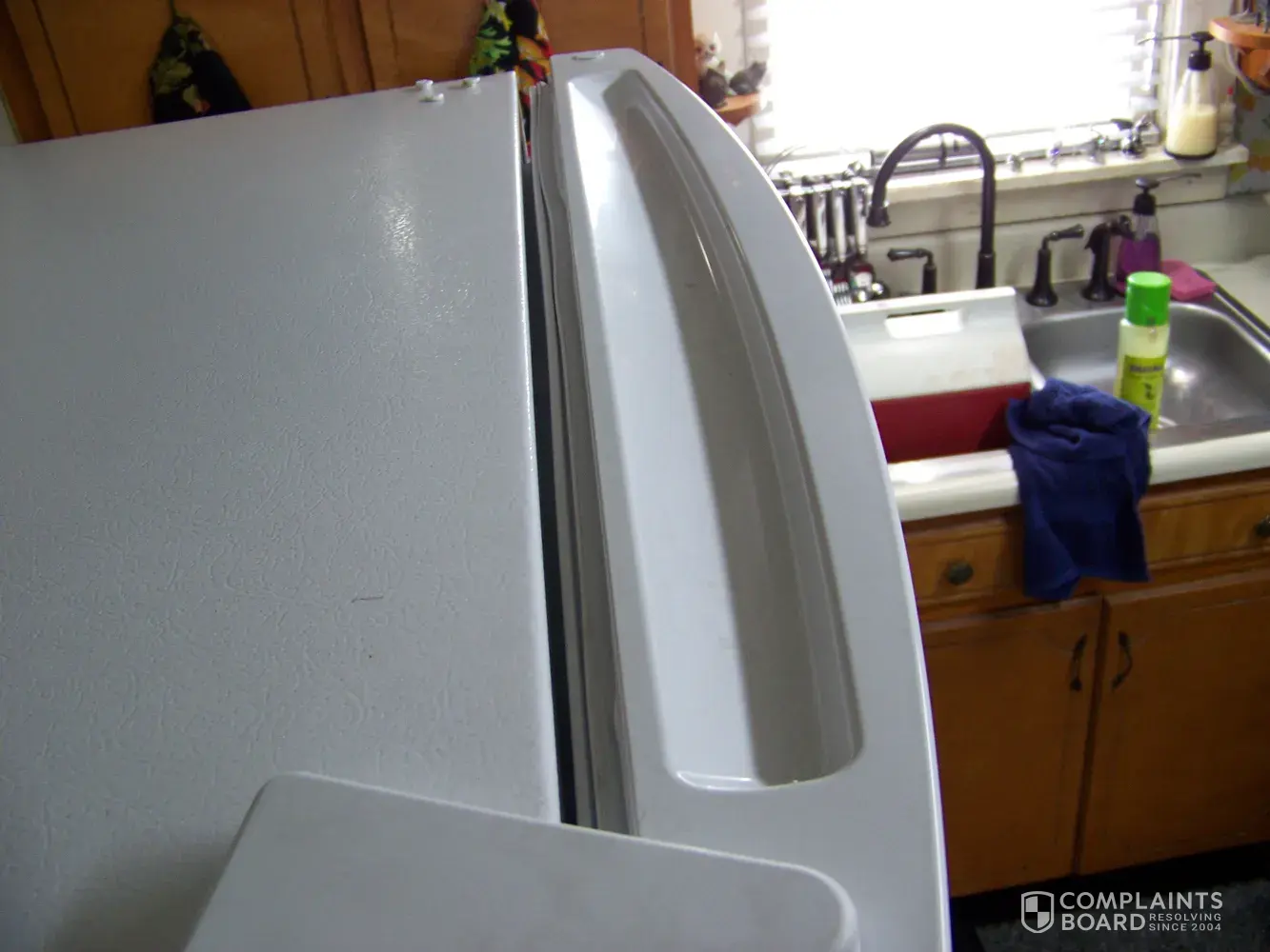 I wish the delivery people would come back and see if they could fix the refrigerator door; I cannot believe they left it this way, the installer was tall enough to see the top that it was not sealing – I had to get on a chair when I noticed the door opening.