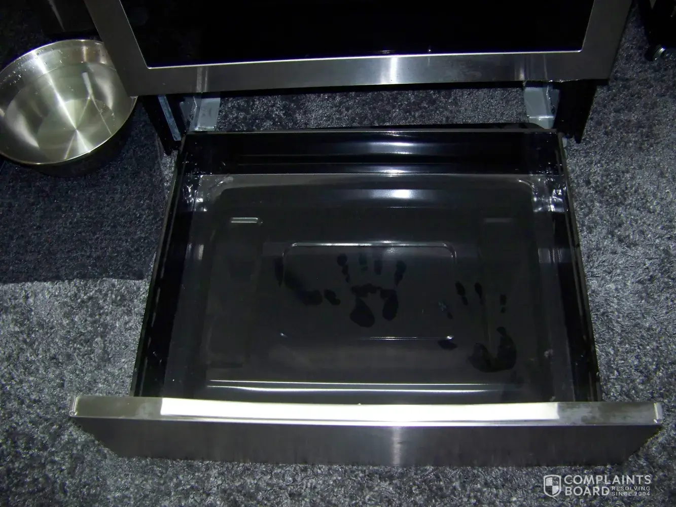 The range had no paperwork at all with it, the bottom drawer has dust and bobby pins, the handle has 4 nicks, looks like the delivery people dinged it when moving it.