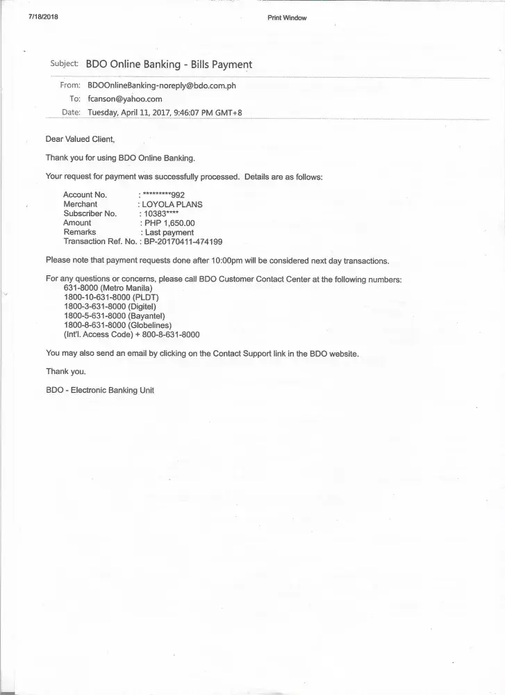 The Loyola Educational Plan for my eldest daughter is already fully paid. Then the Loyola Educational Plan closed. The payment for this plan is hard earned money blood sweat and tears of us parents. Humbly request the benevolent assistance of your good office so that I can claim the Loyola Educational Plan benefit of my eldest daughter Sarah Hazel O. Mesias. My eldest daughter is already a first year college student at the moment and we badly need this financial assistance from this Loyola Educational Plan