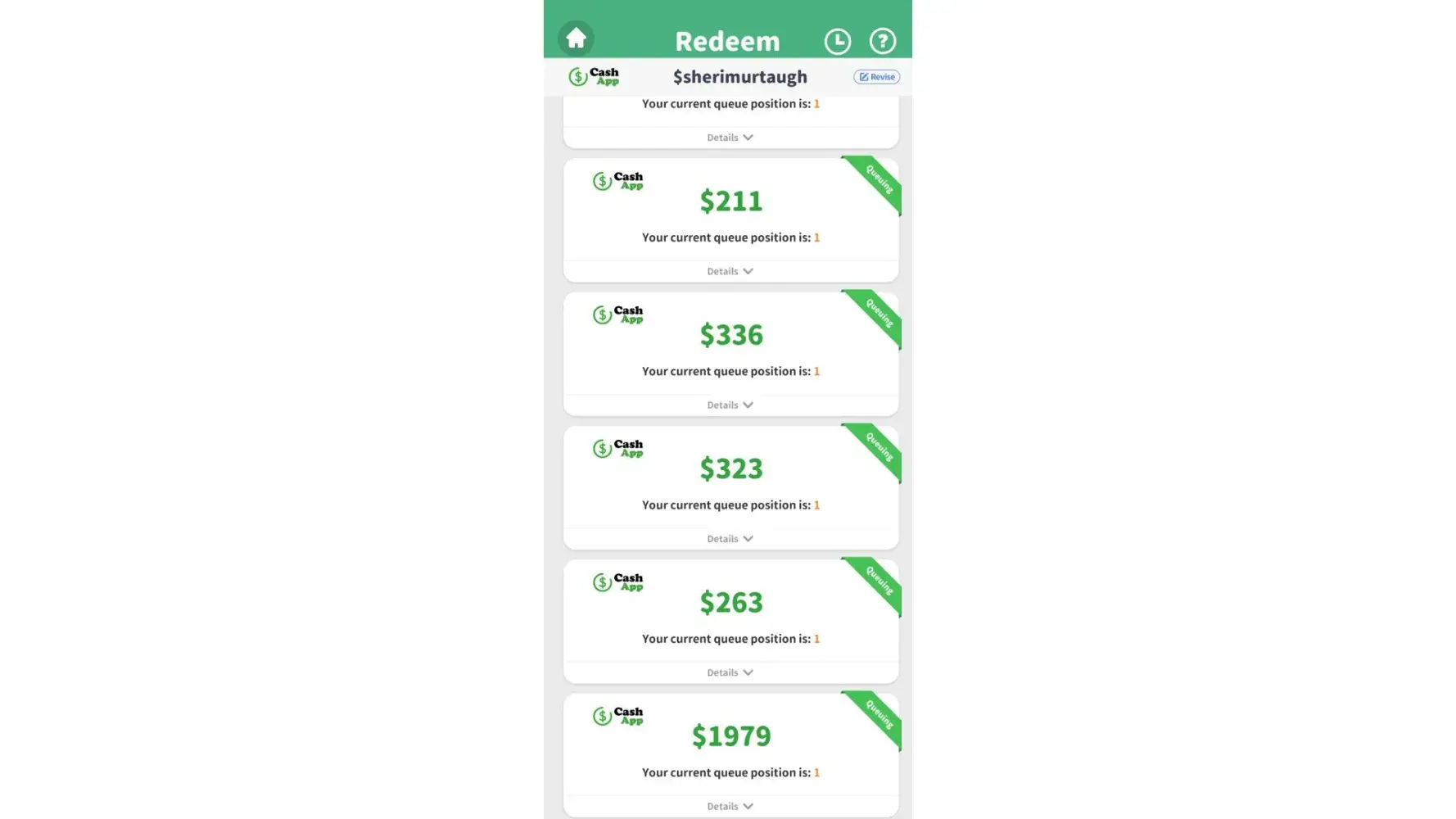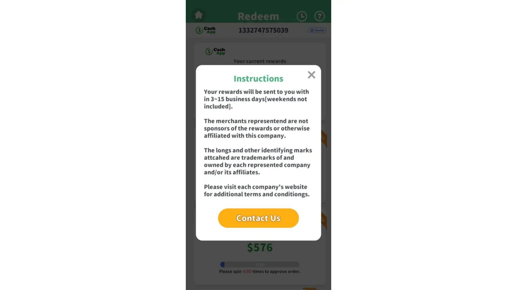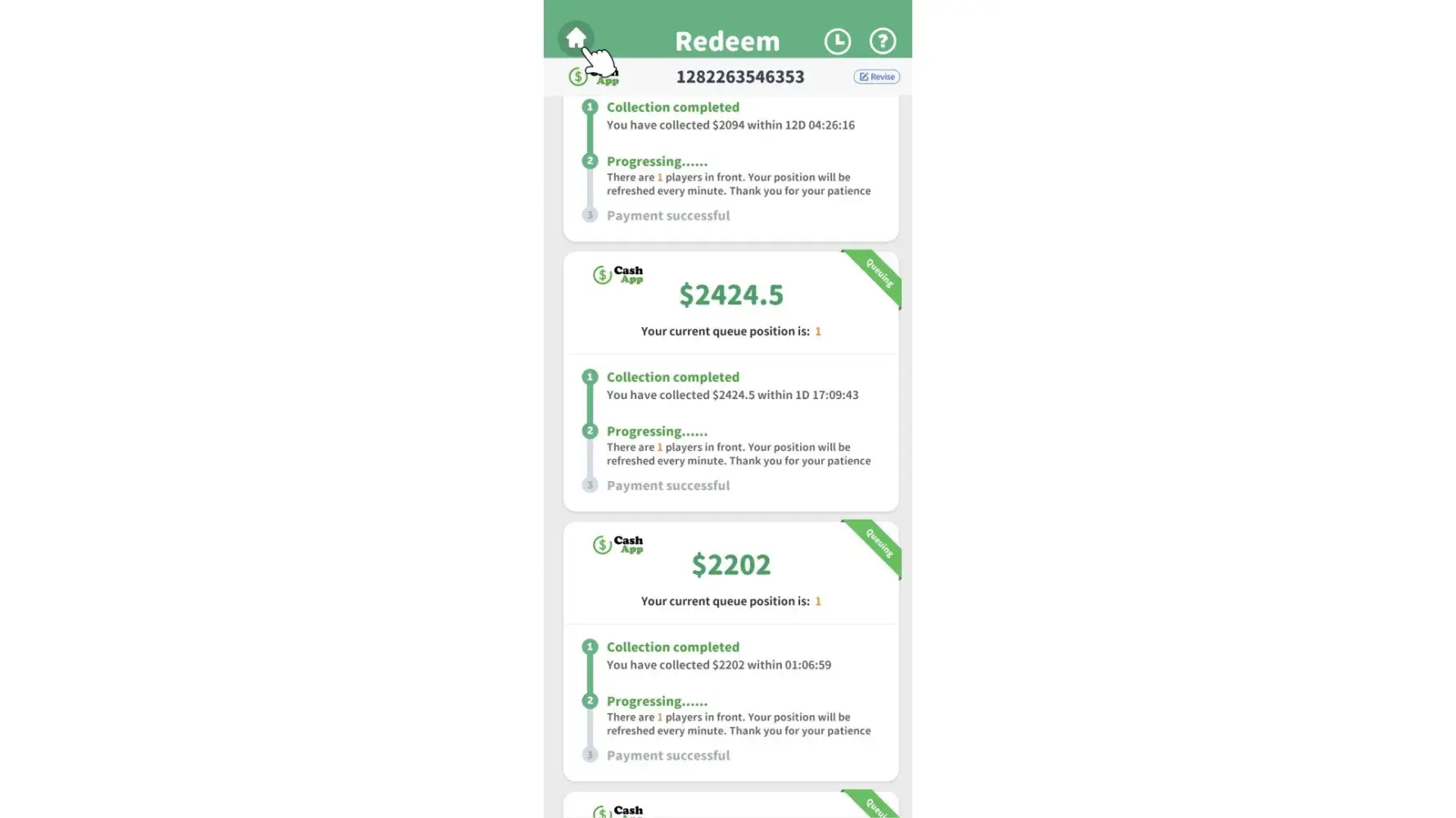 I'm dealing with the same thing. Spun the "required" number of times to "process" the payment then the ads then it said 2 days it would go to my CashApp and now it says I am like 5,518 in then que or some ridiculous number like that.