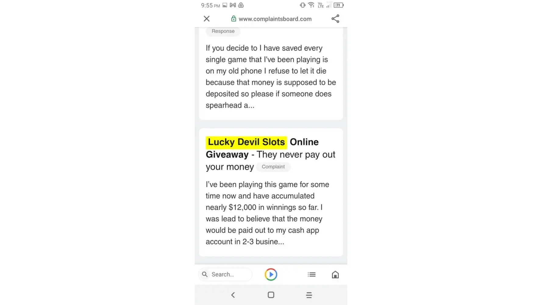 I hope this comment makes it back to the Lucky Devil Slots game publisher, creator and other involved scammers.