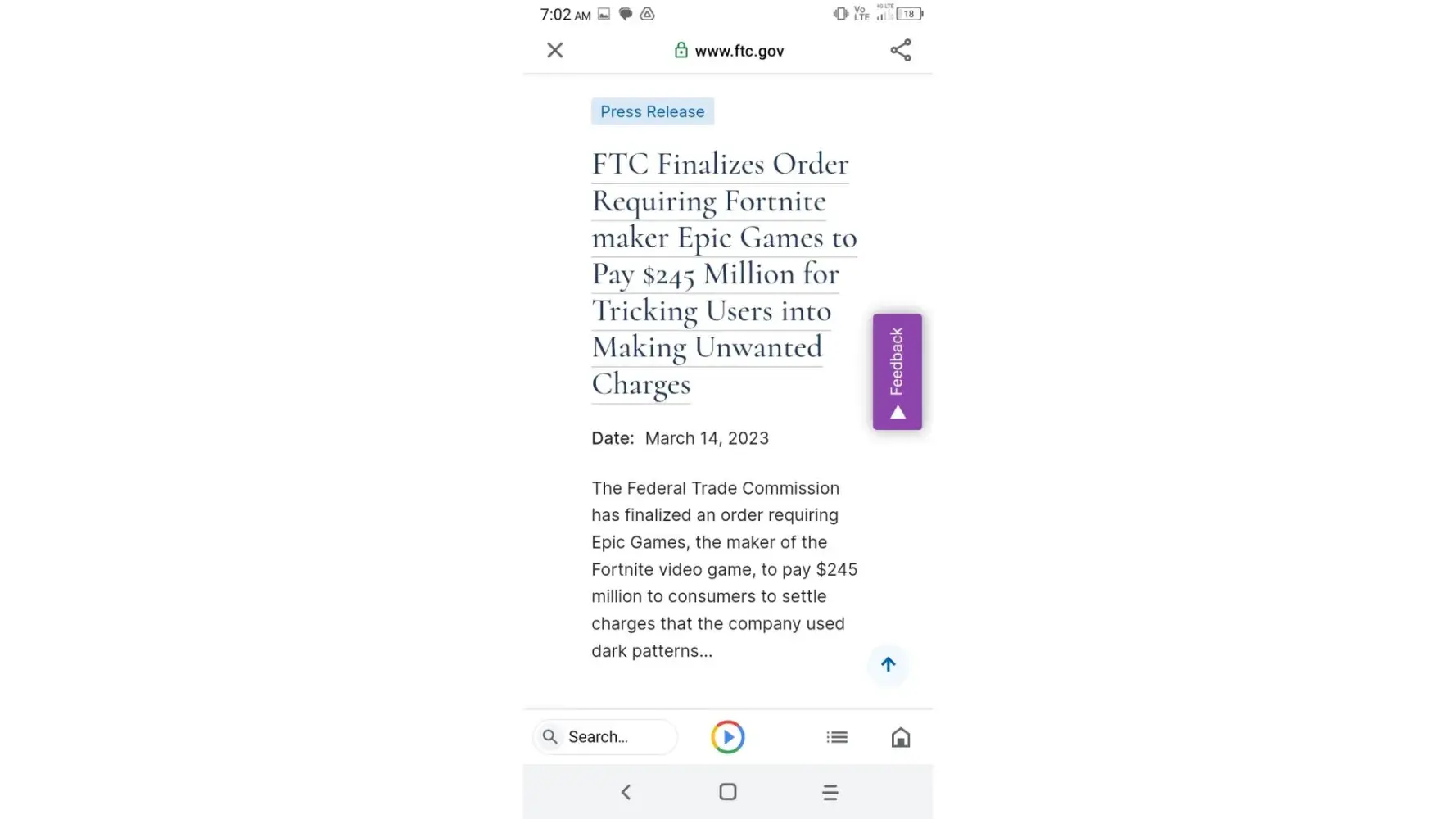 Country of complaint: United States