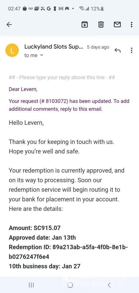 I been playing luckyland slots for over a year I cashed out 900 dollars last week and they sent it back to my luckyland slots account instead of my bank account I sent them numerous emails and I get the same feedback their asking me to verify my identity I sent them a screen shot of redemption approval they did not give me any positive feedback I hope this matter can be resolved in a timely manner