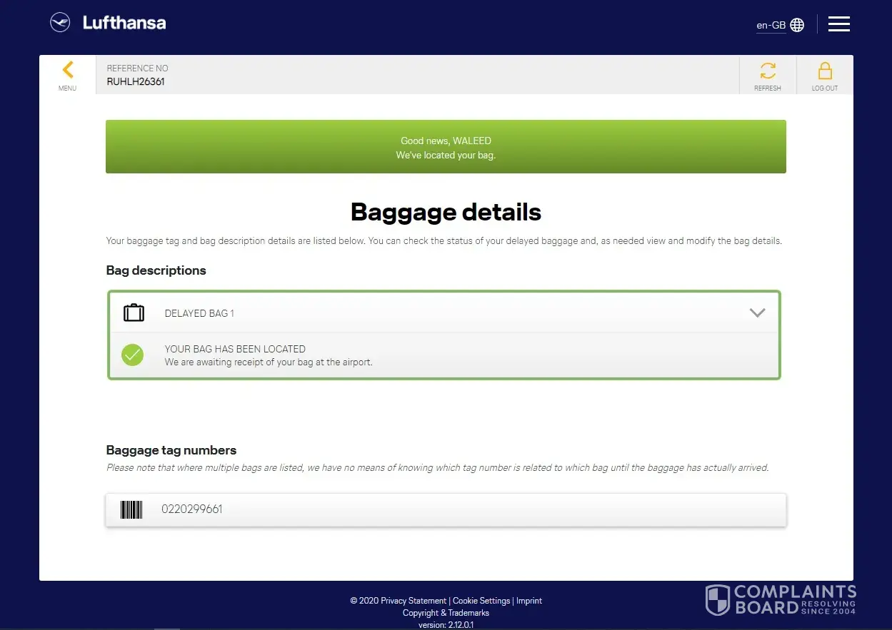 I have traveled onboard Lufthansa plane from Copenhagen to Frankfort and from Frankfort to Riyadh (Saudi Arabia) on August 29, 2020. When I arrived to Riyadh my luggage was missing. I report my missing luggage at Lufthansa website and they replied that my luggage has been found and it will be sent to Riyadh the next day and later it was changed to 14th of September. Still after more than 5 weeks I have not received my luggage. So I wonder when my luggage will arrive.
