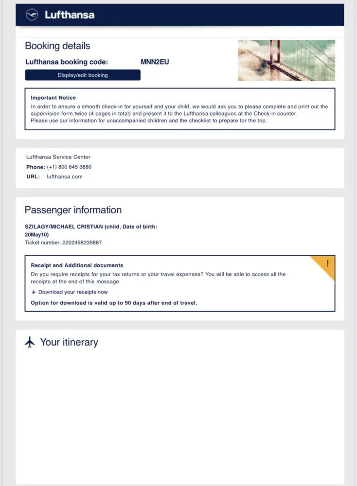to Germany. I have not received an itinerary from Lufthansa. I booked thru