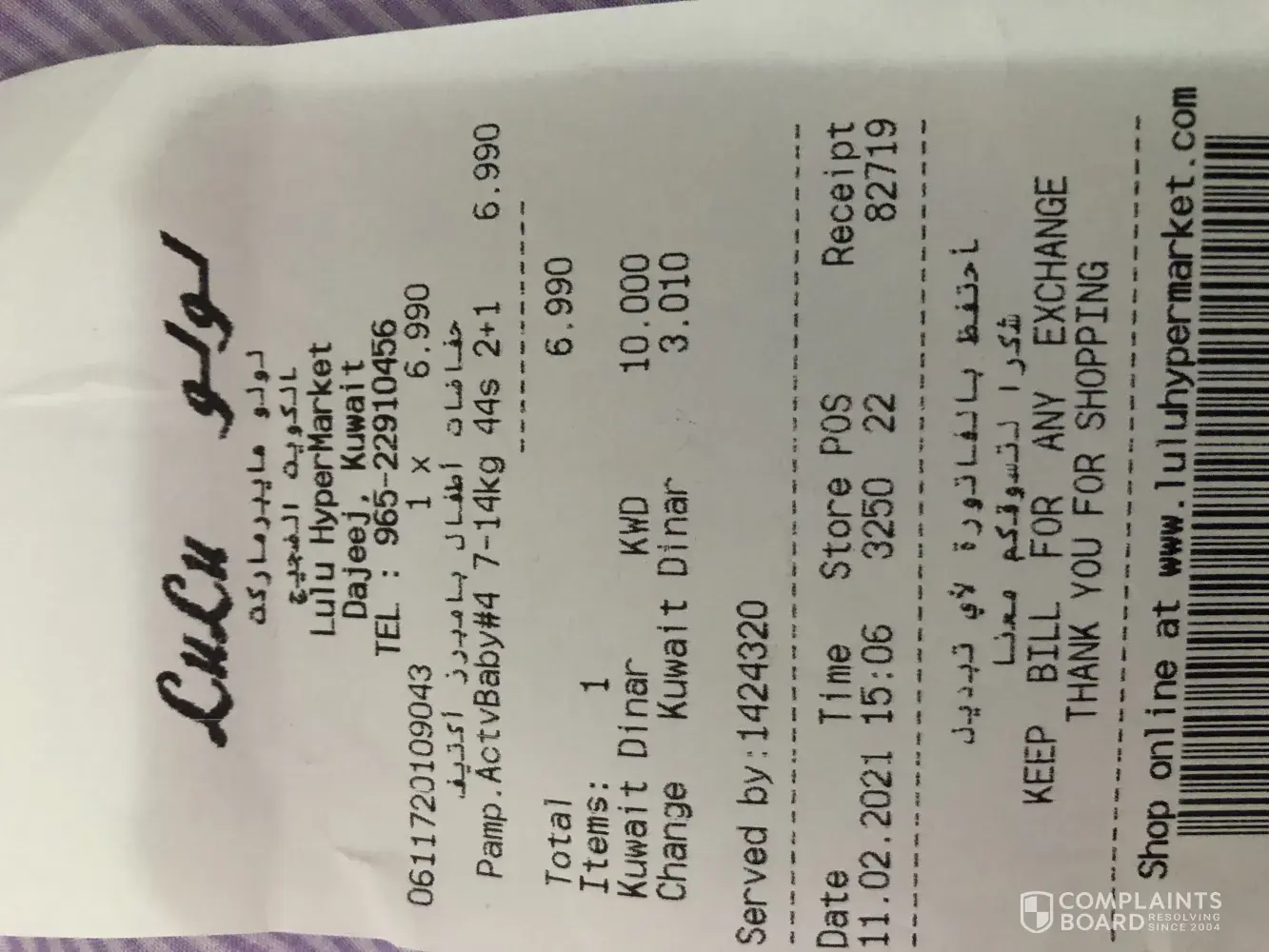 Today i went to lulu hyper dajeej kuwait as there is an offer for pampers at 5.99 kd ( flyer attached below ) . but from the billing they said it is 6.99 kd, i contacted the responsible staffs including supervisor there and they didnt gave an answer for this . Some staffs said this offer is for online only and some other said offer is over . From the flyer it is clear that offer is valid upto 14th february . I came for this offer and i bought another things for 30 kd . If it is your marketing strategy i appreciate it . Keep it up