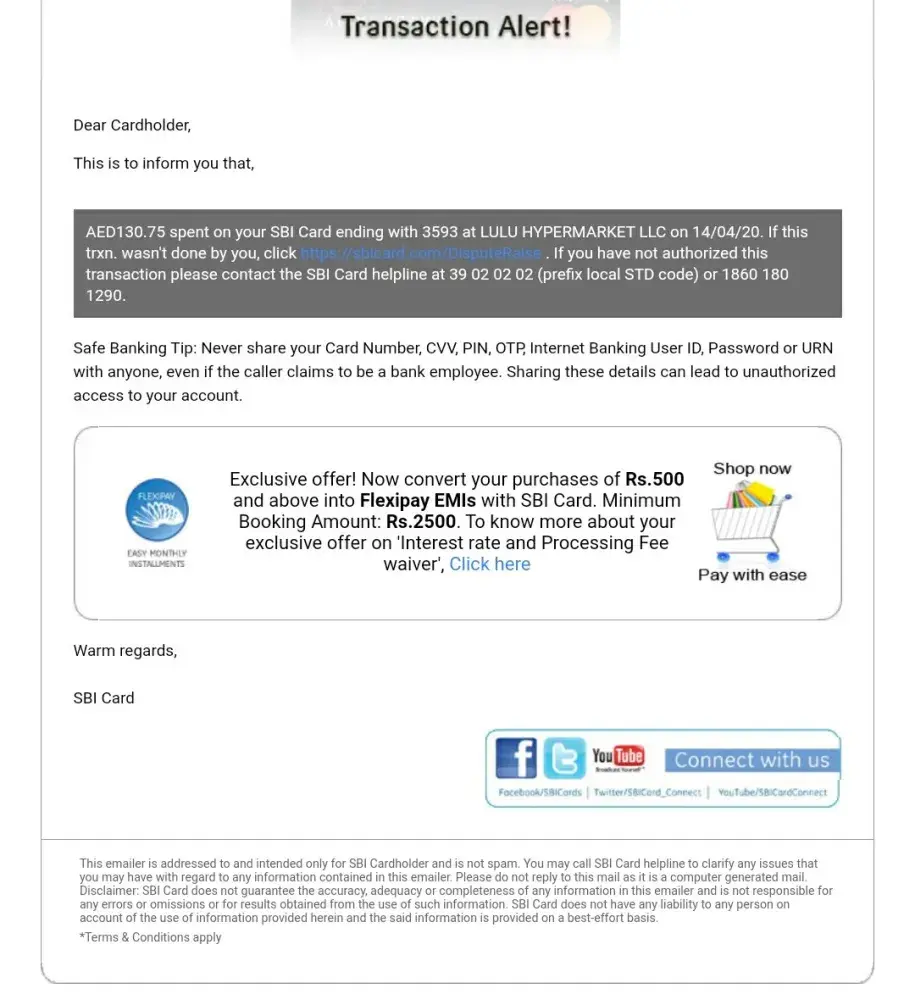 On 14 th April 2020 I payed for an order on lulu online for AED 130.75 through mastercard
