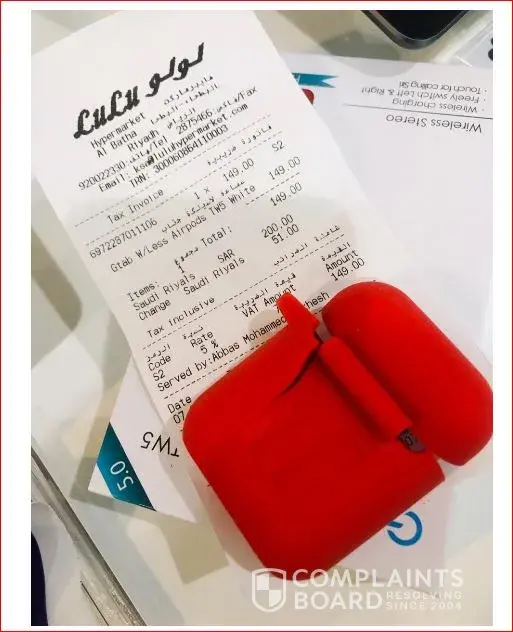 But yesterday 7/5/2020 my friend visit at 2:30 pm LuLu Hypermarket Al Batha, so I inform to buy (air pods) brand name TW5 / SAR 149.