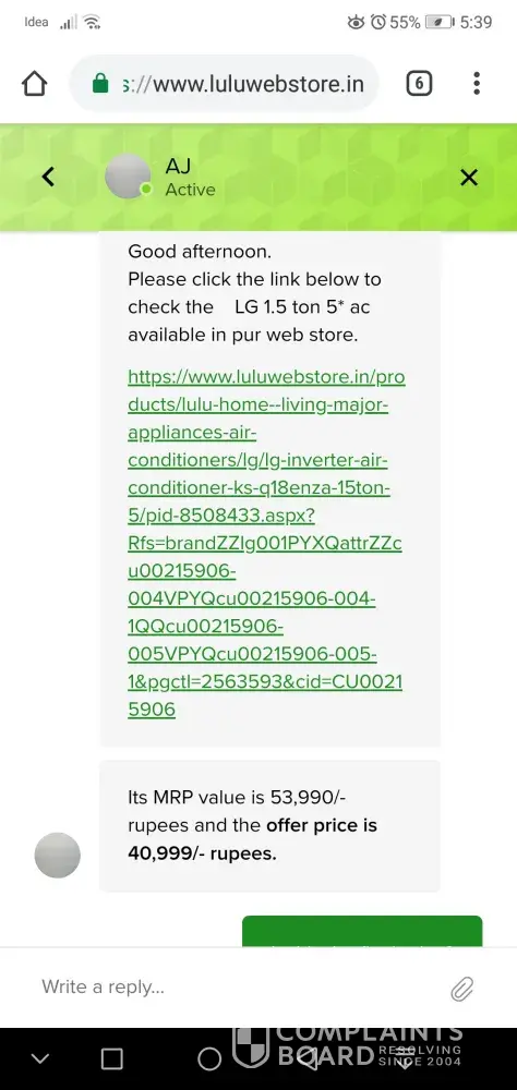 My name is Harshad P. A., I have purchased one A/c from y mall today 15.03.2019. They have charged 42900.00 inr, I also checked webstore their price was 49999. The extra charge was deducted for gst as per the managers Haris word. But I have clarified online later this was cheating from his side. There was no extra tax on it. Now I have enquired him by phone. He made to remove the online price link from webstire. This is the second time I have this issue last time they delivered one defected cooler. Please conside this complaint and do the needful. I am attaching all the screen shots and bills. If you are not doing any proper action I have last option to file a case in consumer court.