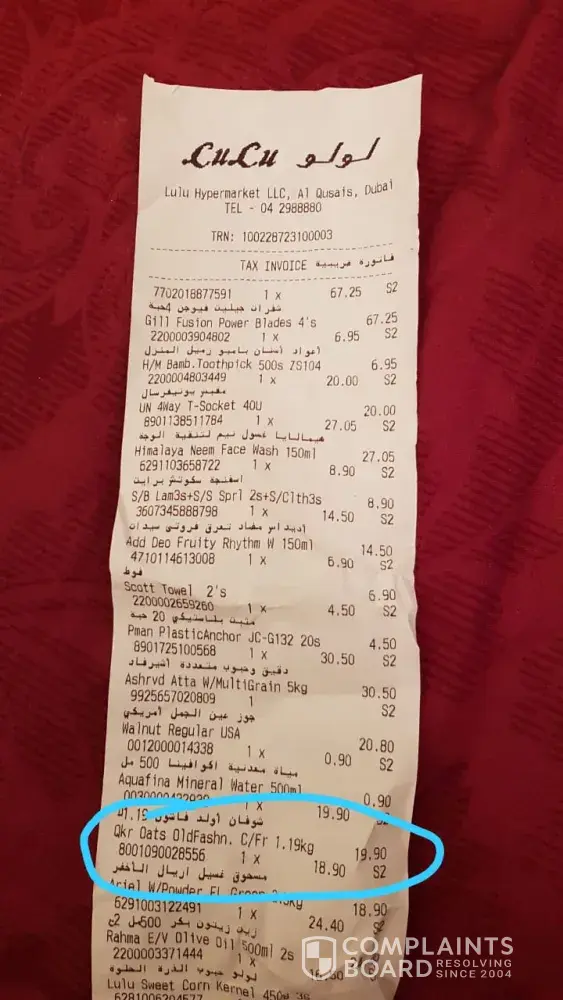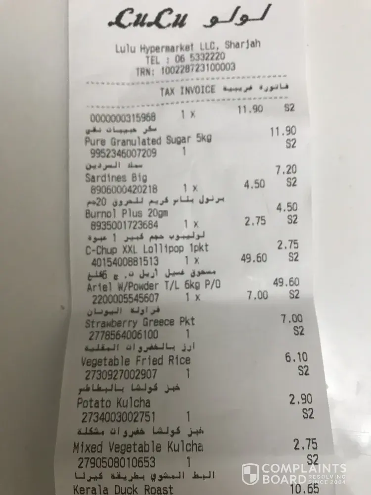 Hi, i am akhil a resident of sharjah. I am a regular customers of lulu for morethan 10yrs but this is the first time i get bills for the item i have not brought. I have checked my items couple of times and i could not see the item which is billed on the invoice.