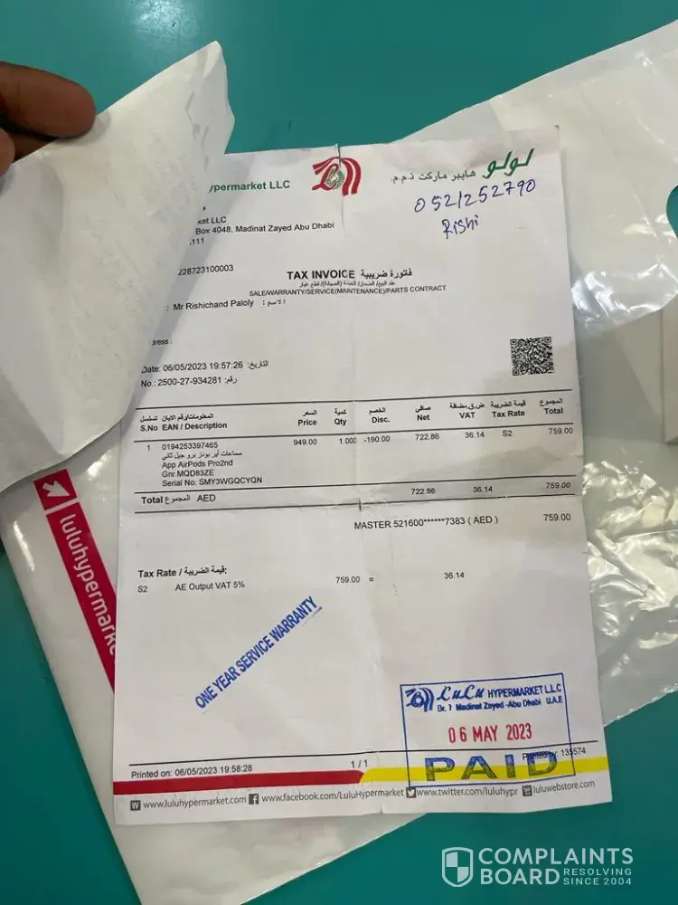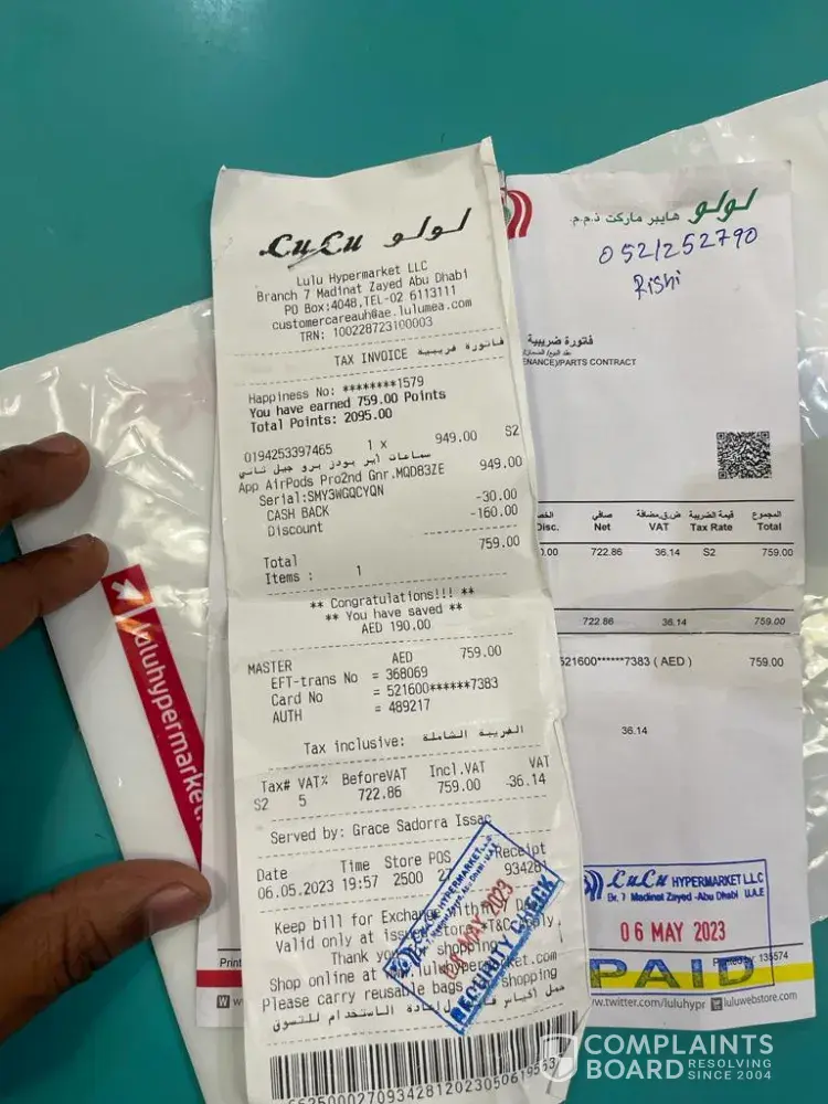 I purchased a phone from lulu at khalidya mall in Abu Dhabi . I went back the same day because I wasn't satisfied with the phone . Customer service employee was unprofessional and didn't want to refund back my money and didn't care when I told him that I was going to leave a bad review about the store. i will never go shopping there again, and I would not recommend anybody to shop at lulu centre.