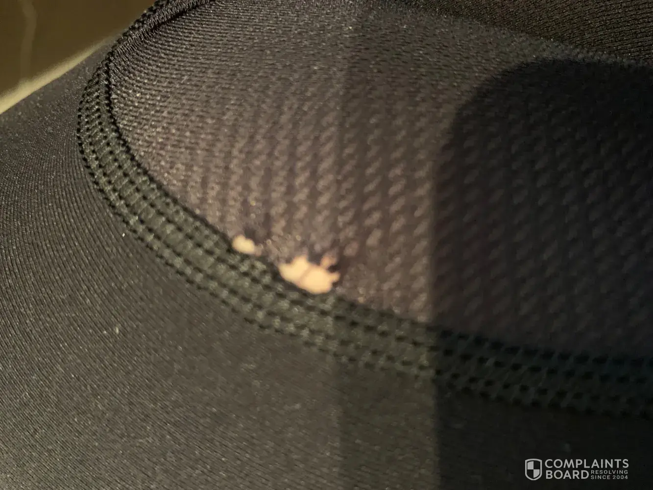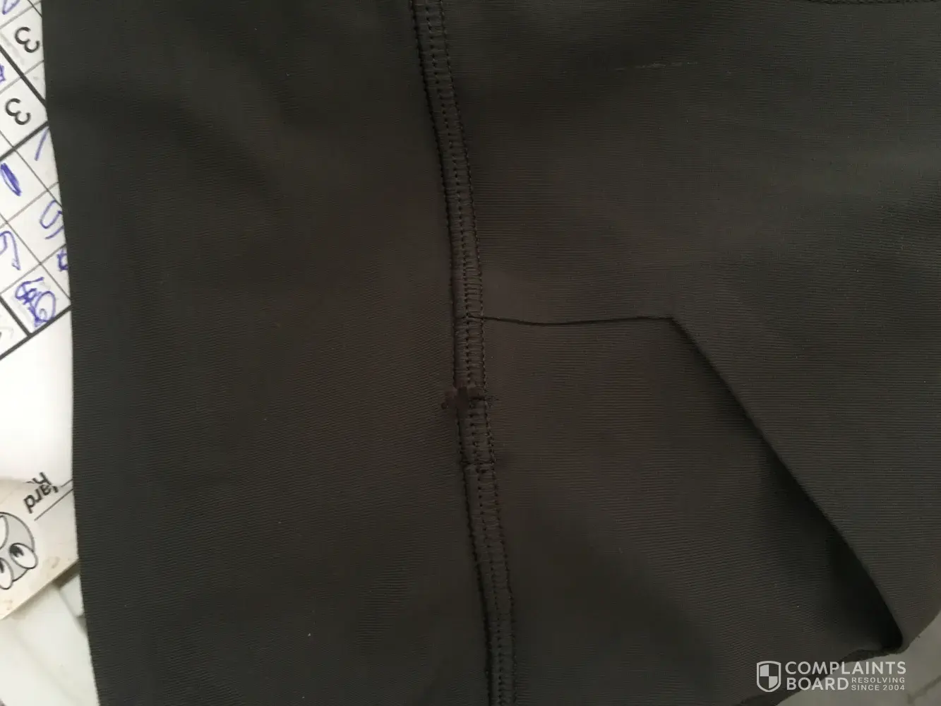 This is not the first time I purchase your products, and usually I'm very satisfied since they are high quality and comfortable. I would expect the pants to be used for a longer period and will not be torn after such a short time. In addition, the high cost justifies uncompromising quality, which is not reflected in the specific pair I got.