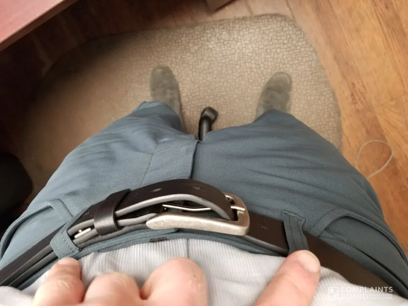 I purchased a pair of your ABC dress pants a while ago (month or so) and finally just realized that the belt loops in the front of the pants don't like you properly! I fear I was sold a defective type of clothing and paying as much as I paid for them I am severely disappointed. The belt loop on the left side is very close to the button and not even close to inline with how far the loop on the right side is.