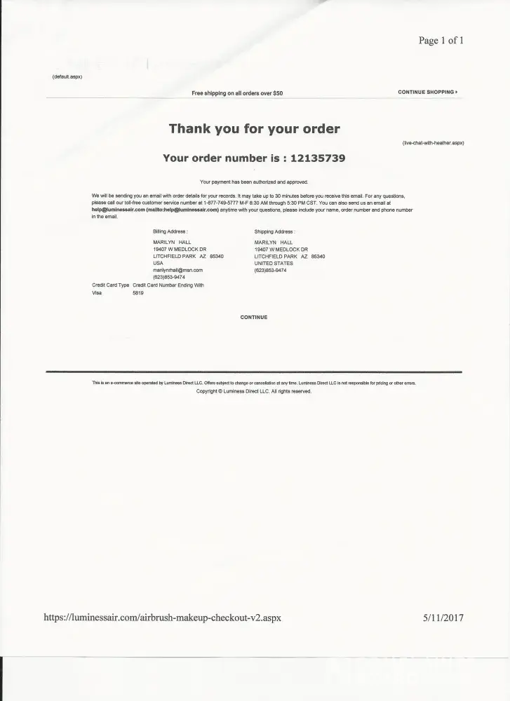 I purchased this product in good faith of the 30 day satisfaction guarantee trial offer. They charged my credit card account on 9/1/2016, the day that I ordered it, 3 charges totaling $40.91, which was the first of 4 payments totaling close to $300.00. I received the product on 9/17/2016. Over the next 3 weeks I attempted to used the product several times when I had leisure time to patiently try to learn the technique. The product simply did not deliver the results as demonstrated by "The professionals" or TV actresses. The results were very bad as a matter of fact, my wrinkles were more apparent and the makeup did not look "natural and flawless" as advertised. At this point, 10/11/2016, I decided to call for an RA and return the product for a refund. The product was packed up as instructed (PLEASE READ the small print return instructions which are very specific and laborious), and mailed with tracking and insurance by USPS on 10/12/2016 which cost me another $12.10. USPS tracking confirmed delivery to the return address provided by Luminess on 10/14/2016. To date 10/29/2016 my credit card has only been credited a $1.00 refund...still waiting for the remaining $39.91 credit.