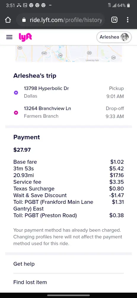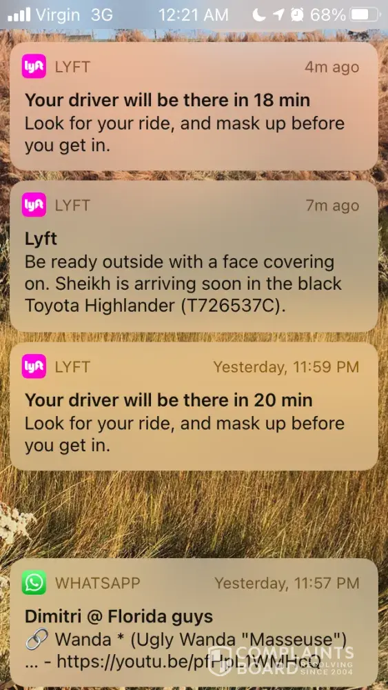 Fix my Lyft app And last night I ordered a Lyft look down a minute later and it was canceled and telling me to order another one but I got charge for two lift that never ended up coming I had to spend cash and pay for a taxi I would like my money back and I would not like to wait 5 to 7 business days please fix this this is been happening all week to me is getting very frustrating thank