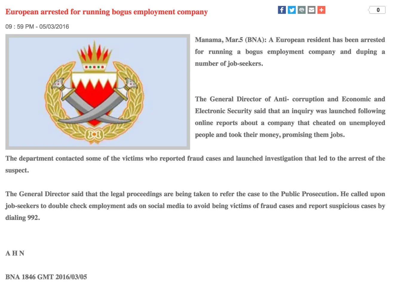 Yet another dodgy business run by and registered to Margaret K (because she doesn't want her name connected...) EURO GULF EVENTS PROTOCOL CO. S.P.C have a look here - http://eurogulfprotocol.com/ one has to wonder about the people surrounding her including members of Bahrain Government - EURO GULF EVENTS PROTOCOL CO. S.P.C IS A COMPANY FOR EVENTS MANAGEMENT, TRADE & TECHNICAL EXHIBITIONS, OCCASIONS, CONFERENCES, PR, MARKETING CONSULTANCY.