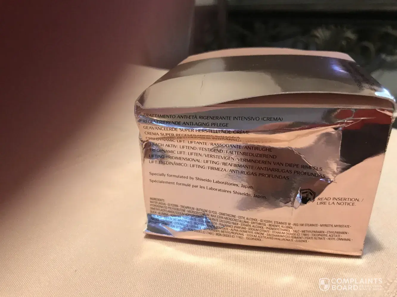 I am a Macy's platinum number. I have ordered Shiseido bio-performance advanced super restoring cream, 2.5 oz. and 4 pc Clinique Travel set. When I got this product, the box all break, looks old stuff. I bought it as gift for my friend, now I am unable to do because too much damaged. I am very upset with this situation. Please help me. Please see attached files.